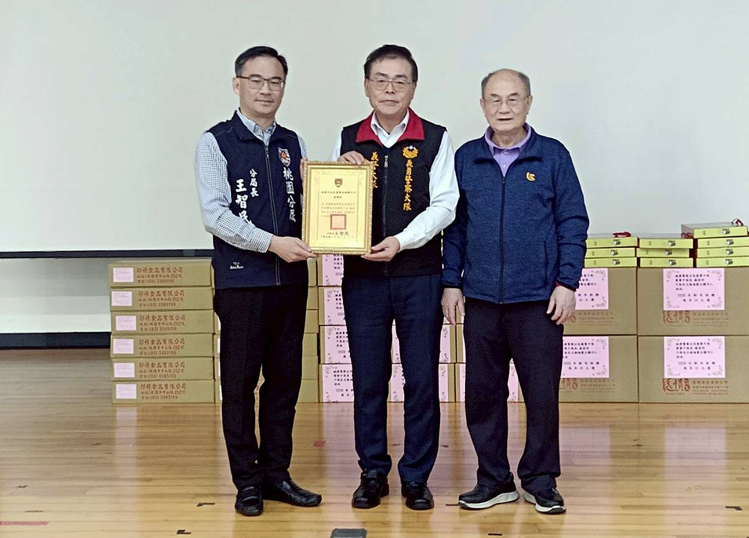 桃園義警中隊致贈破案獎金與物資,桃園警分局表示感謝並做好治安。
