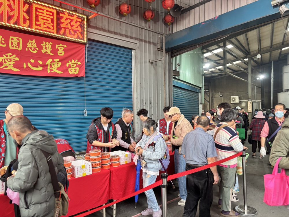 【記者鍾陽正桃園報導】桃園慈護宮為關懷照顧弱勢民眾能在除夕夜溫飽用餐感受社會溫暖,於年除夕當日下午舉行發放除夕愛心便當活動,由主任委員簡征潭偕同常委楊玉清等多位委員、監事到場發放,共有500名登記愛心便當需求的民眾,持登記劵依序排隊,秩序井然,大家都非常感謝慈護宮「桃園媽」賜給的愛心便當。除了發放愛心便當,於農曆春節期間也舉辦為期一個月的補春運活動,邀請信眾前來祈福。