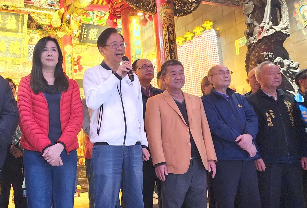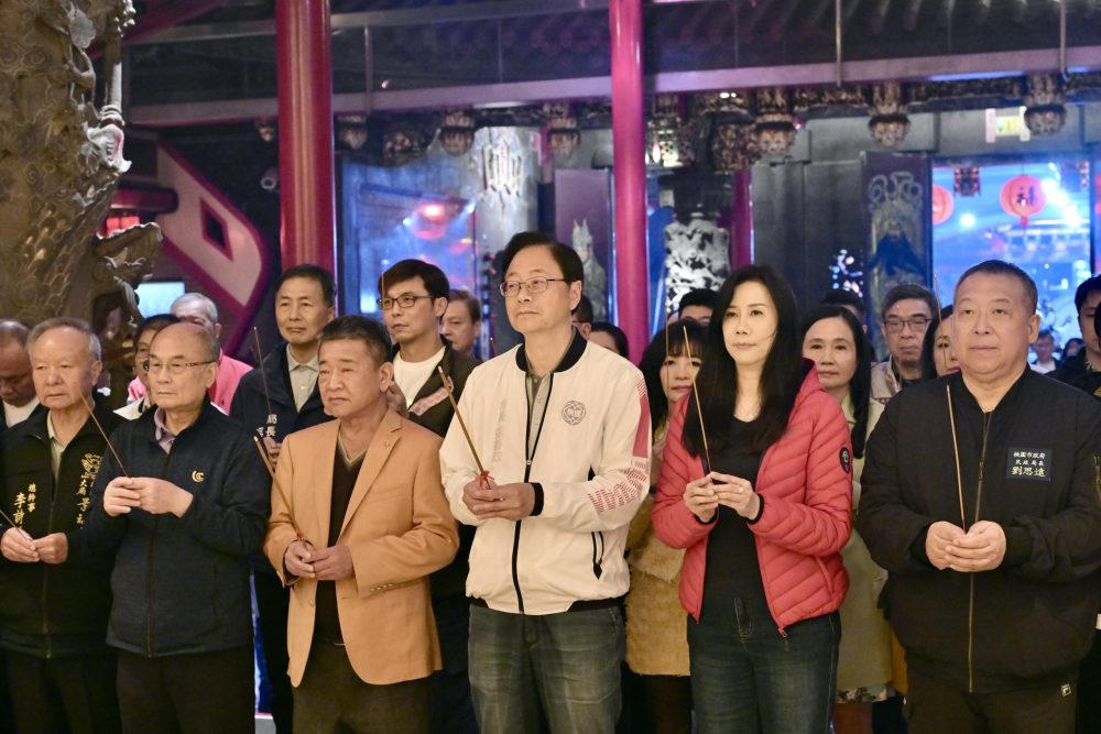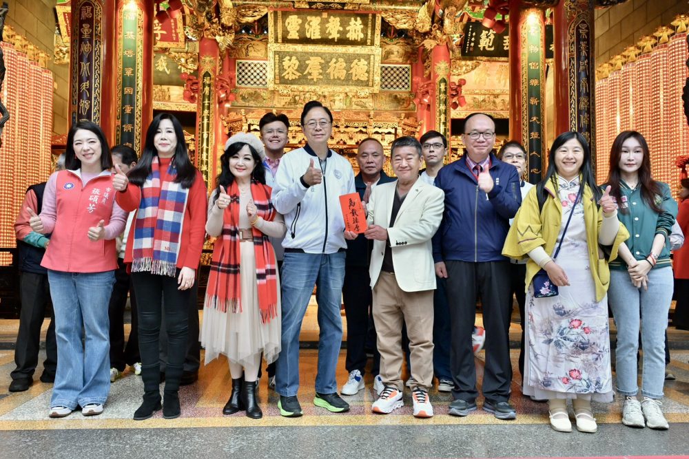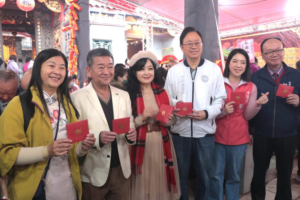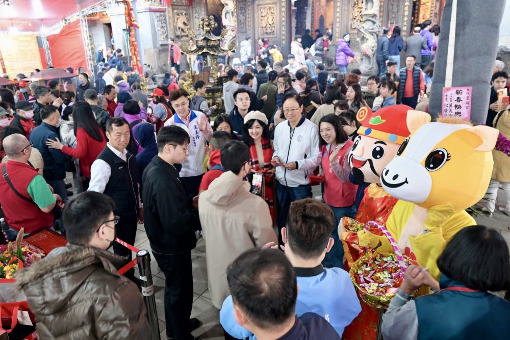張善政表示,大年初一看到鄉親誠心滿滿、不畏寒冷來景福宮參香祈福,相信開漳聖王與諸位神明將會庇佑大家新年平安順遂、心想事成,並恭喜現場民眾皆為「頭香」,同時以「馬載祿厚」勉勵大家攜手努力、共創更美好的桃園。