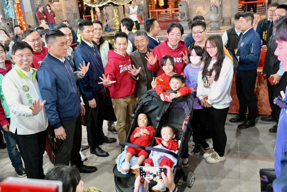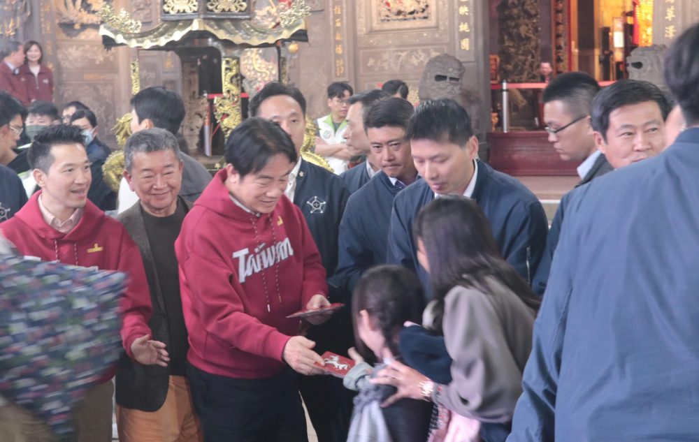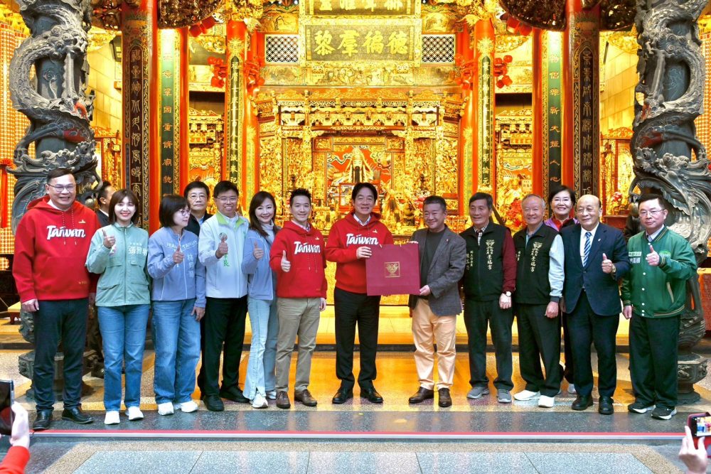 賴總統表示,很高興再次來到大廟與鄉親一同祈福,代表全國人民祈求國泰民安、風調雨順、八節有慶、四時無災,也祝福所有民眾平安健康、心想事成。過去一年南台灣與東部接連遭逢颱風重創,中部亦面臨非洲豬瘟與禽流感等疫情衝擊,所幸在數十萬名志工投入下,國人團結克服各項天災挑戰,令人深感敬佩,因此特別以虔誠之心祈願新的一年平安順利。