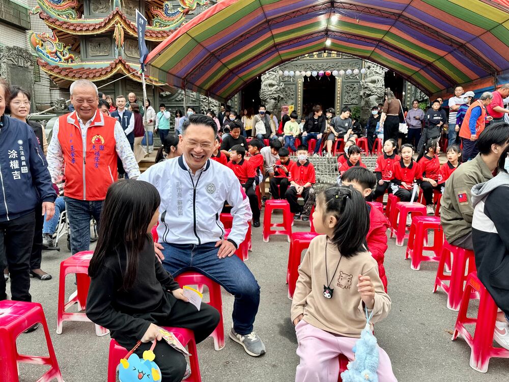 桃園副市長蘇俊賓與現場小朋友開心互動。