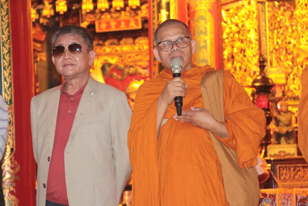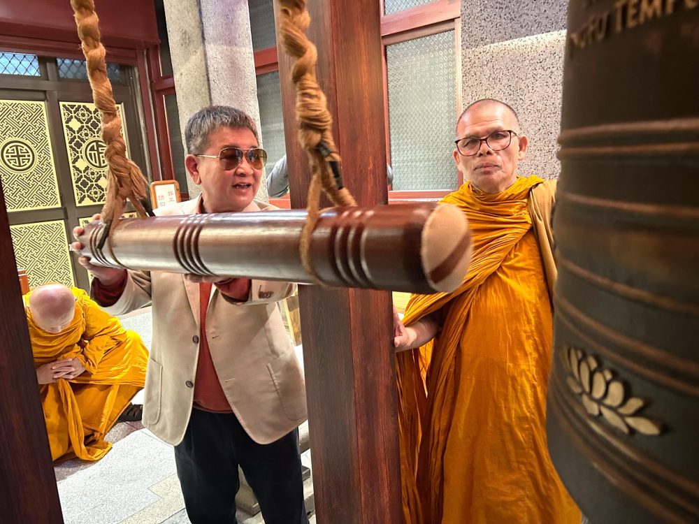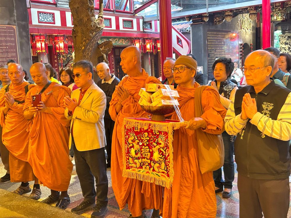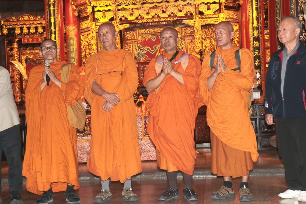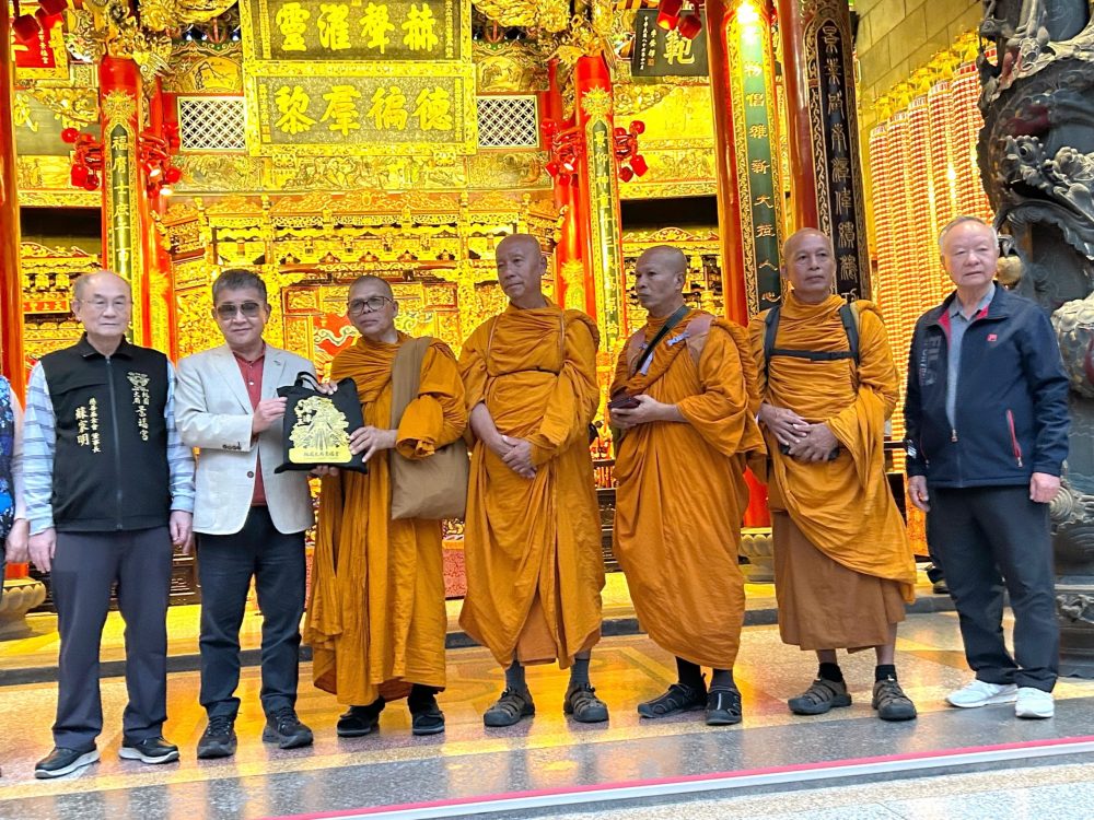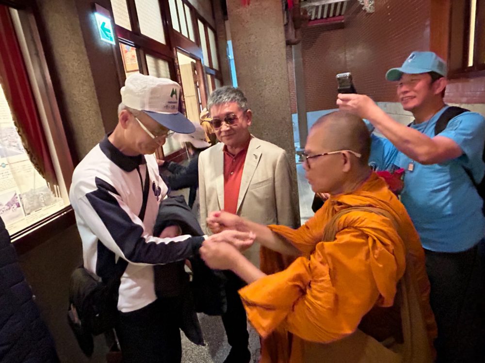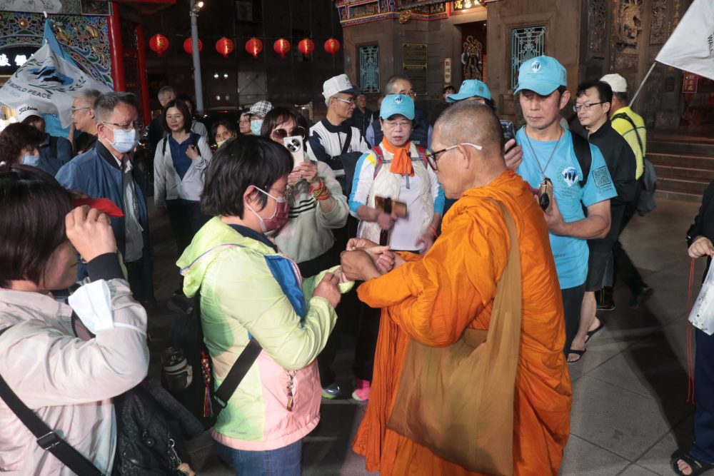 【記者鍾陽正桃園報導】「為世界和平而走」(Walk for Peace) 的僧侶以和平徒步的方式,一步一腳印為世界和平而走,希望為這個紛亂的世界,傳遞內心平靜與世界和平的正能量。這項意義深遠的活動在一位台灣出生旅美40餘年的居士多次接洽後,首次將這份愛與和平踏上台灣,並於日前下午行腳團隊(4位比丘、3位居士),抵達桃園大廟景福宮進廟參香祈福,受到主任委員簡征潭、副主委兼慈善基金會董事長蘇家明、總幹事李詩明暨委員監事的熱誠接待,並致贈禮金與禮物向行腳法師們表達敬意與祝福。活動也吸引許多信眾在廟埕夾道歡迎,並隨同入廟參拜祈福。