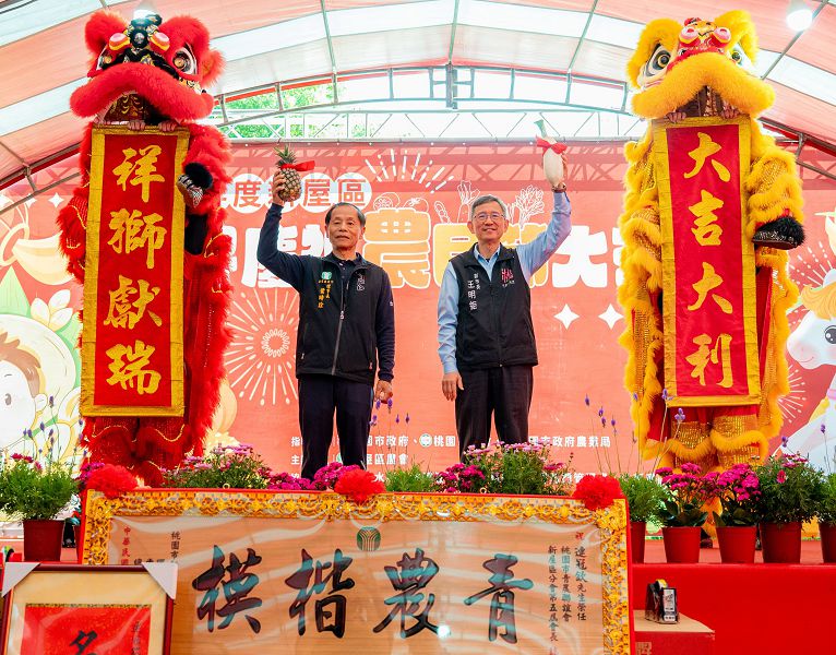 桃園市副市長王明鉅(右)與新屋區農會理事長葉時詮(左)出席「115年新屋區農民節慶祝活動」。