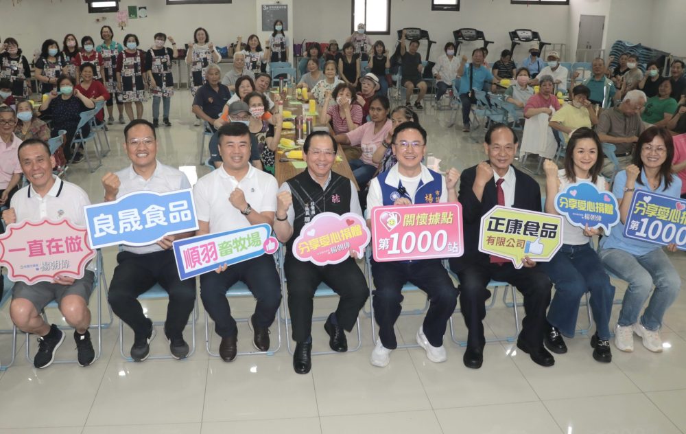楊朝偉回顧三年多來的愛心接力,送出的物資數量相當可觀,包括順羽畜牧場提供的雞蛋、正康食品的豆奶、良晟食品的蛋糕、麵包、蛋塔與燒餅等點心、桃城蒔菜的新鮮蔬菜等等,非常多的食材都提供給我們關懷據點。楊朝偉強調,非常感謝這段期間很多的協力廠商給我們的支持,也正是因為有這些夥伴企業的支持,才能早一步將健康送到長輩身邊。今天能達到1000站的服務,並不是終點,而是我們未來繼續努力的目標。長者照顧是政府與民間的共同責任,未來將持續擴大愛心物資的捐贈任務,並在議會全力爭取完善福利方案,讓關懷據點的食材、活動、課程能夠更活潑、更精彩,照顧到各區的關懷據點更多老人家,願意來到關懷據點,成為真正友善高齡的幸福城市。
