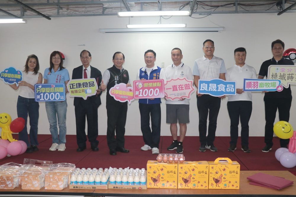 【記者鍾陽正桃園報導】桃園市議員楊朝偉深耕八德捐贈愛心物資破千站,特於23日上午在八德區廣隆大同大成市民活動中心舉行「愛心捐贈八德區關懷據點第1000站記者會」,由市議員楊朝偉主持,社會局長陳寶民也親臨現場,肯定楊議員統合民間資源,將地方服務落實到每一座社區據點的豐碩成果,同時也頒贈感謝狀表揚熱心公益的企業代表。廣隆里長蘇臻宥、順羽畜牧公司董事長李訓樑、正康食品公司董事長張義康、良晟食品公司總經理曾易耆、副總經理曾翊誠、桃城蒔菜董事長邱冠鈞及社區志工等人均出席。