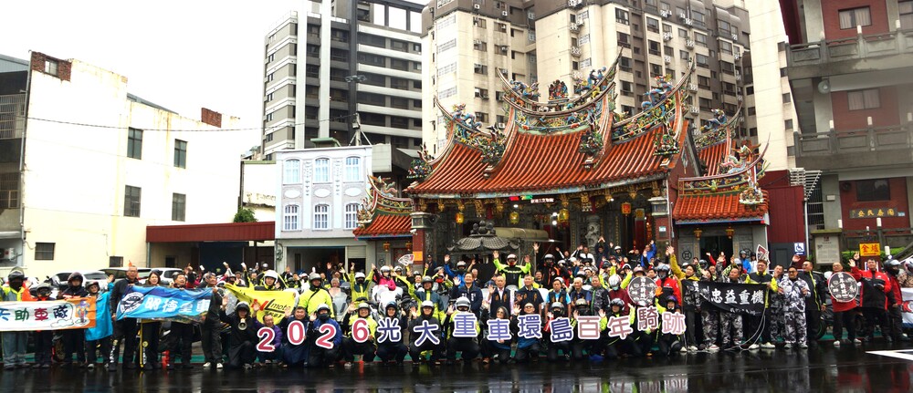 南崁五福宮主委邱進賢也表示,該宮廟埕寬大,歡迎「2026百年騎跡」「光陽光大重車隊」隊友於此聚集,相信玄壇元帥會保佑他們旅途一路平安!順利!
